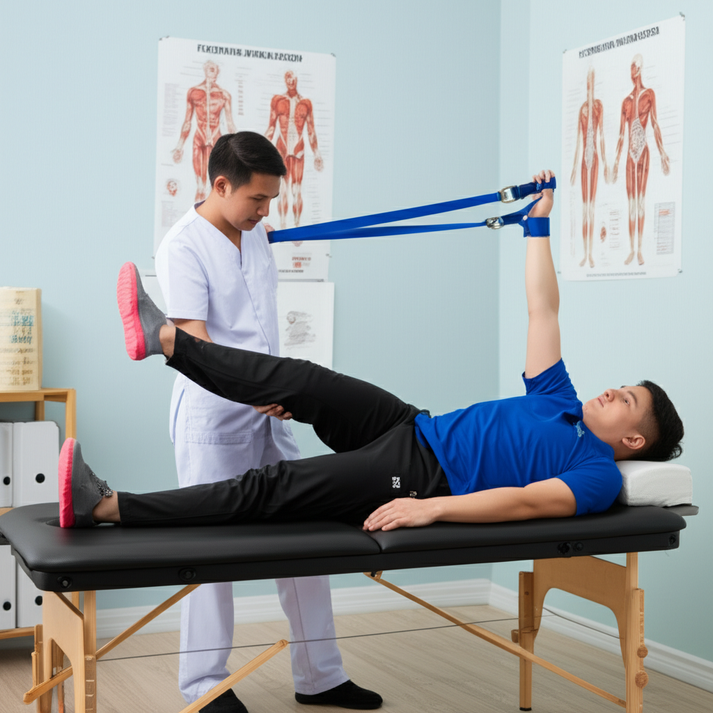 - Latihan Terapeutik: Gerakan spesifik untuk mengembalikan kekuatan, fleksibilitas, keseimbangan, dan rentang gerak sendi.