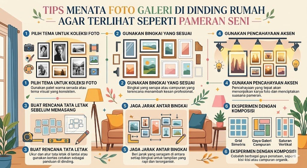Mengubah dinding rumah yang kosong menjadi sebuah galeri foto yang menawan adalah salah satu cara terbaik untuk memberikan karakter dan sentuhan personal pada hunian. Namun, menata foto tidak sekadar memaku bingkai ke tembok secara acak. Agar hasilnya terlihat profesional dan artistik layaknya pameran seni di galeri ternama, diperlukan perencanaan yang matang dan pemahaman tentang estetika visual. Dengan teknik yang tepat, kumpulan memori Anda bisa bertransformasi menjadi titik pusat perhatian yang memukau bagi siapa saja yang berkunjung ke rumah.